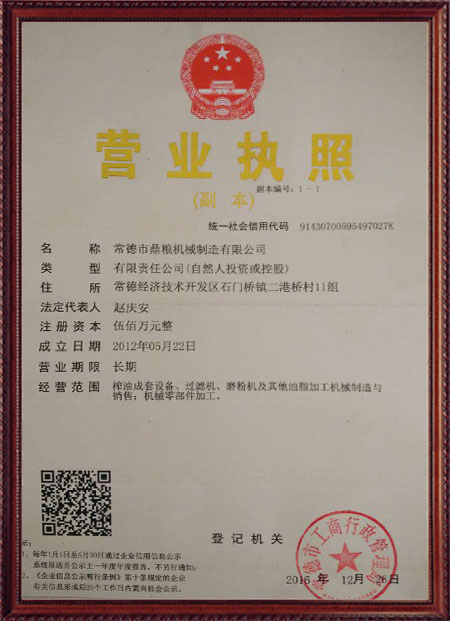 企業(yè)堅(jiān)持“質(zhì)量、口碑就是我們的生命”的原則,嚴(yán)格執(zhí)行質(zhì)量標(biāo)準(zhǔn)檢驗(yàn)體系。生產(chǎn)的"鼎糧"牌系列產(chǎn)品,產(chǎn)品質(zhì)量?jī)?yōu),性價(jià)比高,深受廣大新老客戶的青睞,通過(guò)了各級(jí)部門(mén)的鑒定認(rèn)可,立式、臥式液壓榨油機(jī)均榮獲農(nóng)機(jī)推廣證。